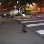 The impact of the crash caused the Rogue to flip on its side and be pinned against the traffic light post.