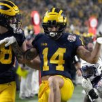 Roman Wilson’s 18-yard touchdown run on a reverse and a 2-point conversion pulled Michigan within 41-38 with 14:13 left in the fourth quarter.