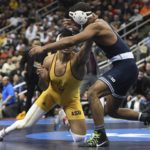 Penn State’s Jason Nolf of Kittanning has made a habit of convincing victories in the NCAA finals, and this match was more of the same. Nolf (31-0) defeated Tyler Berger (28-4) of Nebraska, 10-2, to become a three-time champion. In his previous two victories in 2017 and 2018, Nolf beat Missouri’s Joey Lavallee, 14-6, and N.C. State’s Hayden Hidlay, 6-2.