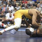 Virginia Tech’s Mekhi Lewis came all the way from the No. 8 seeding position to dethrone Penn State’s Vincenzo Joseph, a two-time defending champion, 7-1. Lewis was in charge of the match from start to finish and improved to 28-2. It was Virginia Tech’s first wrestling championship.