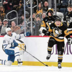 Taking a pass in Toronto’s high slot, Penguins defenseman Erik Karlsson one-touched the puck to the lower left circle where Rust tried to re-direct a forehand shot on net. Maple Leafs defenseman Conor Timmins read the sequence perfectly and flopped to his knees to block the shot but inadvertently deflected the puck to the opposite circle where Bunting swept in a wrister through Ekman-Larsson’s legs and by the left skate of an outstretched Woll. Rust and Karlsson had assists.