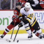 Chasing down a loose puck at the Penguins’ right point, Devils defenseman Dougie Hamilton whacked a one-timer at the cage that Jarry stopped. A furious scramble unfolded on the ensuing rebound as Jarry failed to smother the puck. As Noesen and Penguins defenseman Ryan Shea exchanged shoves and punches, Hischier fished the puck out of the chaos to the right of the crease by dragging the puck with his stick to his right skate then tapped a forehand shot through Jarry’s five hole. Assists belonged to Hamilton and defensive partner Brenden Dillon.