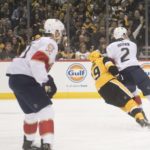 The Panthers took a 1-0 lead at 2 minutes, 28 seconds of the first period. Pushing a puck up the right wing, Panthers forward Frank Vatrano zipped by minimal resistance from Letang and attacked the net, shuffling a one-handed backhander on net. Goaltender Tristan Jarry denied the initial shot but allowed a rebound that Vatrano jabbed past Jarry’s left leg with a forehand shot for his ninth goal of the season.
