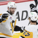 Taking a pass in Montreal’s left corner, Letang identified a seam to the far side of the crease and slipped a pass between ex-Penguins defenseman Mike Matheson’s right skate and the blue paint for Rakell, who tapped in a forehand shot by goaltender Samuel Montembeault’s left skate. Letang and Grzelcyk generated assists.