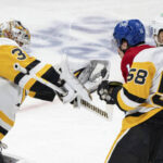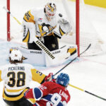 Off a faceoff win by Canadiens forward Christian Dvorak in Montreal’s right circle, Matheson tried to bank the puck off the near boards but had it intercepted by Crosby, who dished the puck to the right hashmarks for Rakell. Surrounded by Matheson and Canadiens forward Brendan Gallagher, Rakell fed a blind backhand pass below the right circle for Rust, who one-touched a forehand shot from a bad angle off of Montembeault’s left shoulder and into the cage on the near side. Assists went to Rakell and Crosby.