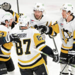 Racing up the left wing into the offensive zone, Crosby left a drop pass on the half-wall for Rust, who pushed the puck toward the near corner and slid a pass to the top of the crease where Rakell tapped in a forehand shot by Montembeault’s glove. Rust and Crosby collected assists.