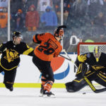 The Flyers scored on the power play with the goalie pulled. James Van Riemsdyk cleaned up a loose puck in the crease with 3:04 to play.