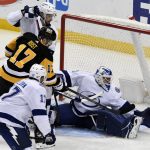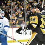 The Lightning made things respectable with a power-play score by forward Brayden Point at 7:57 of the third. Off some precision passing, Point stroked a one-timer from the Penguins’ slot past the right skate of a scrambling DeSmith for his 36th goal off assists from Kucherov and defenseman Mikhail Sergachev.