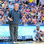 Shown during a game last season, West Virginia coach Bob Huggins is scheduled to lead his team into a December game in Brooklyn.