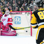 Matt Murray played a sensational second period, stopping all 13 shots he faced as the Red Wings turned up the pressure, and Crosby ended a 10-game goal drought when he cashed in on the rebound of a Kessel shot off the post for a power-play insurance goal in the third.