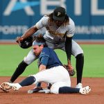 The decisive blow Friday was pinch-hitter Harold Ramirez’s one-out single off Pirates relief pitcher Yerry De Los Santos. The hit scored Vidal Brujan, the free runner who scored from third after stealing the base without a throw. Pirates catcher Tyler Heineman did not appear to have a secure grip on the baseball.