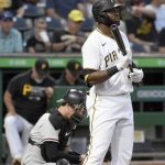 The Pirates bats helped bite into the Arizona lead, with triples by Gamel and Bryan Reynolds, back-to-back doubles by Colin Moran and Jacob Stallings in the fifth and Yoshi Tsutsugo’s pinch-hit home run that started a three-run rally in the seventh. It was Tsutsugo’s first at-bat at PNC Park, his second pinch-hit homer and third oveall in the past week.