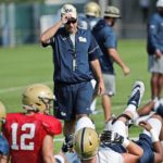 Pitt defensive coordinator Randy Bates pushes players, himself with equal vigor