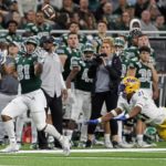 With 47 seconds left in the game, Pitt wide receiver Taysir Mack made a spectacular one-handed grab of a 25-yard pass from Pickett. Officials called interference on Eastern Michigan, but Mack secured the ball, anyway, to erase the Eagles’ 30-27 lead.