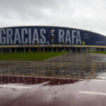 If that weren’t already obvious, just glance at the banner measuring 28,000 square feet (2,600 square meters) — about half the size of a football field — that wraps around the soccer stadium across the street from the arena hosting the tennis. The blue sign, visible from the highway leaving Malaga’s airport, is marked with large white letters that read, “GRACIAS, RAFA.” Between those two words is an image of Nadal toting a tennis racket in his left hand while wearing one of his trademark sleeveless shirts and his just-as-ever-present headband.