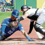 But Cook caught it and fired a one-hop throw to catcher Joey Bart, who tagged a head-first sliding Pham in the face for a double play. It was a reminder of the rocket-armed Clemente, a Hall of Fame right fielder who was a 12-time Gold Glove winner for the Pirates. The Royals challenged the call, but it was upheld after video review.