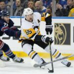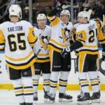 Karlsson made amends for his miscue and stole a pass in the neutral zone then chipped the puck into the Rangers’ zone up the right wing. Penguins forward Noel Acciari chased the puck down on the half-wall, spun off a check from Rangers defenseman Zach Jones and then offloaded a backhand pass to the near faceoff dot. Lizotte accepted the pass and elevated a far-side wrister by goaltender Igor Shesterkin’s blocker. Acciari and Karlsson claimed assists.
