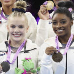 Biles now has 26 world championship medals, 20 of them gold, to go with her seven Olympic medals, including the 2016 Olympic title. Her 33 combined medals at the sport’s two biggest events are one more than what Larisa Latynina of the Soviet Union achieved.