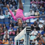 While Biles wasn’t perfect — she took a couple of big steps back on her vault dismount and got so much air on the triple-double that she landed out of bounds — her mixture of difficulty and precision remains the standard in the sport.
