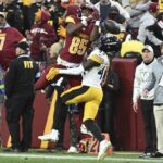 Steelers Mike Williams pulls in fourth-quarter touchdown against the Commanders on Sunday, Nov. 10, 2024, at Northwest Stadium in Landover, Maryland.