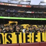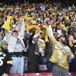 Steelers fans celebrates as the Steelers beat the Commanders on Sunday, Nov. 10, 2024, at Northwest Stadium in Landover, Maryland.