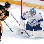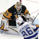 Settling a rebound in the Penguins’ left circle, Lightning defenseman Victor Hedman fed a pass to the high slot for Kucherov who had his stick cocked and blasted a one-timer by Penguins forward Philip Tomasino as well as Jarry’s glove on the near side. Hedman and ex-Penguins forward Jake Guentzel generated assists.
