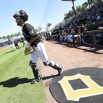 Pirates catcher Jacob Stallings takes the field for the start of the Grapefruit League opener against the Twins Saturday, Feb. 22, 2020, at LECOM Park in Bradenton.
