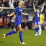Morgan’s curling goal sailed out of reach of Brazilian goalkeeper Lorena. Morgan now has five goals all-time in SheBelieves matches.