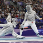PARIS — All three U.S. women’s saber fencers lost their opening bouts at the Paris Olympics on Monday under the cloud of an investigation that examined possible match-fixing in qualifying for the Games.