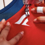 In this handout provided by Fanatics, a Fanatics logo is sewn on the back of a Florida Panthers NHL hockey jersey at the SP Apparel factory in Saint-Hyacinthe, Quebec, Tuesday, June 11, 2024. The NHL unveils new player jerseys for the 2024-25 season made by Fanatics, Wednesday, June 26, 2024, the first time the company has designed and manufactured on-ice/field/court uniforms for a major professional sports league. (Photo courtesy Fanatics via AP)