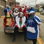 Santa’s helpers toss treats to the crowds and engage onlookers to laugh, sing and dance, she said.